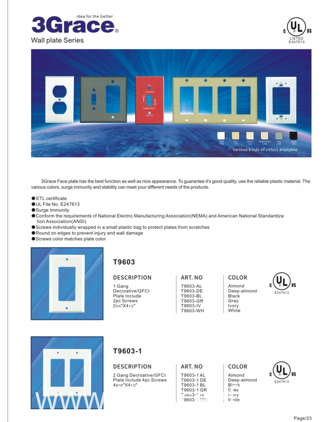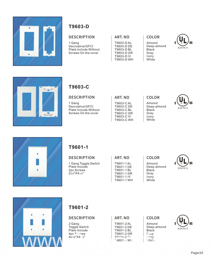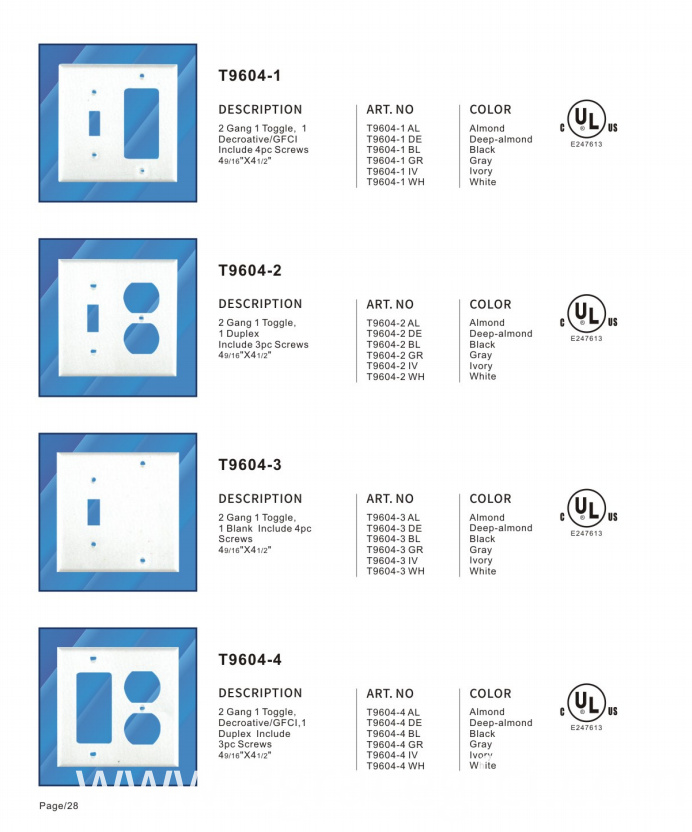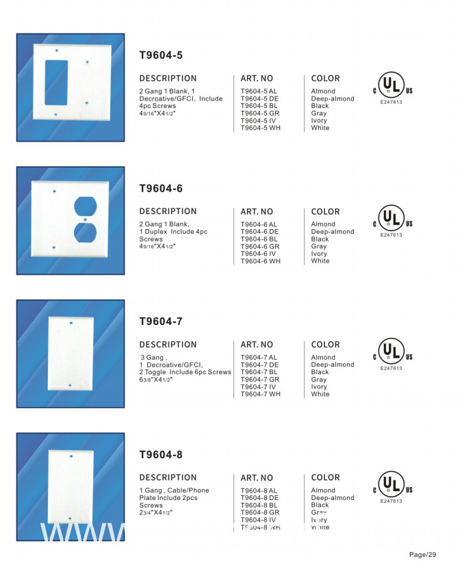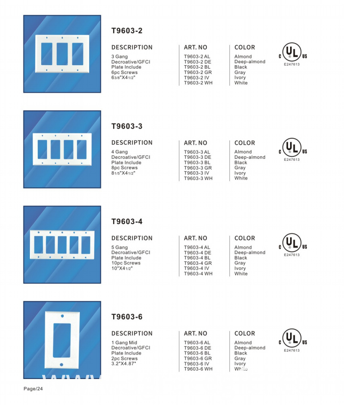 4. All cover plates are UL certificate