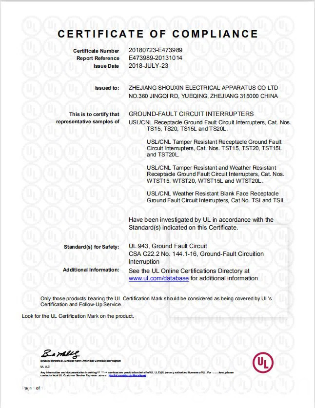 Certification: UL & CUL Listed